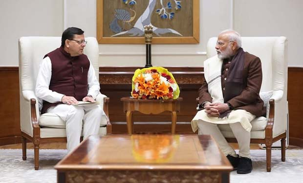 नई दिल्ली/देहरादून। उत्तराखंड के मुख्यमंत्री पुष्कर सिंह धामी ने प्रधानमंत्री नरेंद्र मोदी से शिष्टाचार भेंट की। मुख्यमंत्री ने प्रधानमंत्री को उत्तराखण्ड में 38वें राष्ट्रीय खेल के लिए आमंत्रित किया। उन्होंने प्रधानमंत्री को मलारी (चमोली) की शॉल और नारायण आश्रम की प्रतिकृति भी भेंट की।