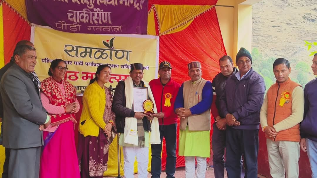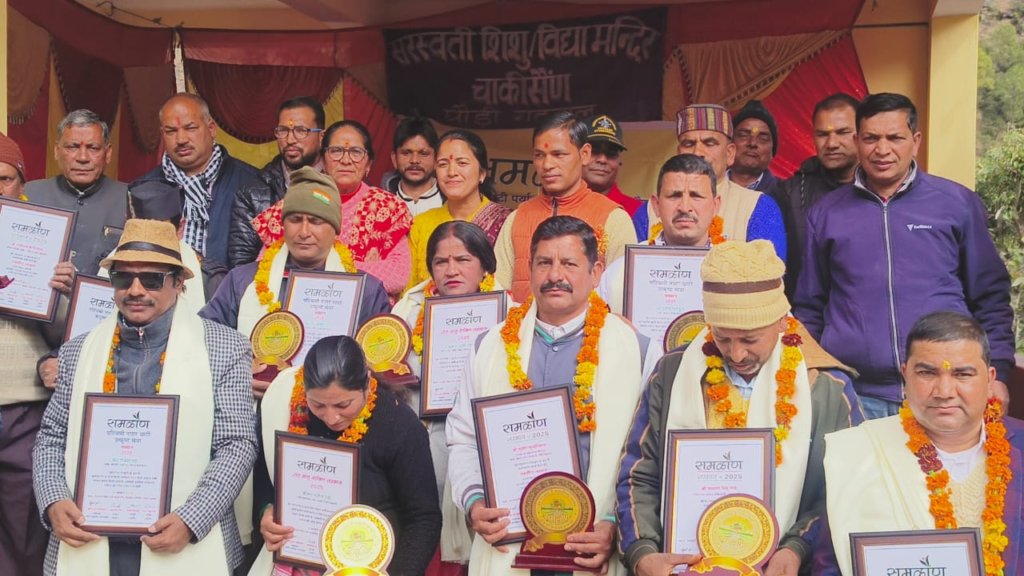 समळौ॑ण राठ मात्रृशक्ति सम्मान से सम्मानित किया गया, वहीं लोक संस्कृति के संरक्षण पर सराहनीय कार्य करने पर डाक्टर राकेश भट्ट ,पत्रकारिता के क्षेत्र में यूट्यूब चैनल संपादक संदीप गुसाईं , ग्रामीण पत्रकारिता के क्षेत्र जगमोहन डांगी , सोशल मीडिया के क्षेत्र में प्रमोद खंडूड़ी इसके साथ-साथ शिक्षा के क्षेत्र में उत्कृष्ट कार्य करने पर जनपद पौड़ी के विकासखंड पाबो के राजकीय इंटर कॉलेज साकरसै॑ण में कार्यरत प्रवक्ता भौतिक विज्ञान महेश पोखरियाल एवं विकासखंड थलीसैण के जनता जूनियर हाईस्कूल जाख के प्रधानाध्यापक श्री शैलेन्द्र सिंह रौथाण को पश्चिमी नयार घाटी उत्कृष्ट सेवा सम्मान से माननीय मुख्य अतिथि श्री नंदन सिंह नेगी एवं संस्था के संरक्षक आसाराम पंत के हाथों सम्मानित किए गए।