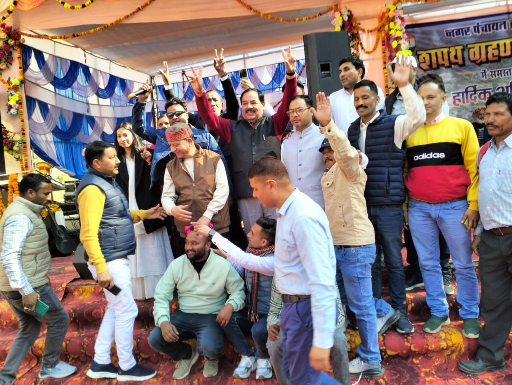 इस शपथ ग्रहण को भव्य एवं दिव्य बनाने चर्चित लोक गायक अमित सागर एवं उनकी टीम की भी विभिन्न प्रस्तुतियां दीं चैता की चेताली पर खूब थिरके पूर्व मंत्री हरक सिंह रावत एवं सभी उपस्थित जन समूह शपथ ग्रहण समारोह में स्थानीय लोगों समेत नगर व क्षेत्रीय कांग्रेस पदाधिकारी व कार्यकर्ताओं ने जितेंद्र चौहान को नपा अध्यक्ष बनने पर बधाई दी। पूर्व प्रधान जगदम्बा डंगवाल ने नगर पंचायत अध्यक्ष एवं चारों वार्डों के सभासदों को स्मृति चिन्ह एवं अंग वस्त्र ओढ़कर कर सम्मानित इस दौरान जितेंद्र चौहान ने कहा की आम लोगों की समस्याओं के निराकरण के लिए एक सजग पहरी के रूप में पूरी टीम मिलकर कार्य करेगी,