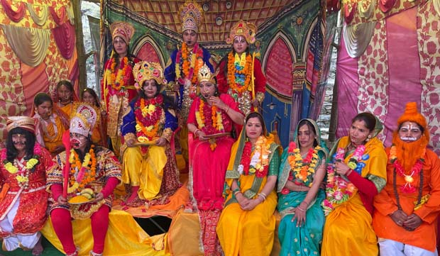 राम की भूमिका रामेश्वरी भट्ट, लक्ष्मण की प्रतिभा, सीता की आरती गुसाईं, भरत की खुशी नेगी, शत्रुघ्न की पुष्पा देवी, हनुमान की रेखा जोशी उनियाल और गुरु वशिष्ठ की विमोचन रावत ने निभाई। हारमोनियम पर सुदर्शन सिंह भंडारी और तबला पर दीप कुंवर गुंसांई ने संगत की। समापन पर प्रसाद वितरण भी किया गया।