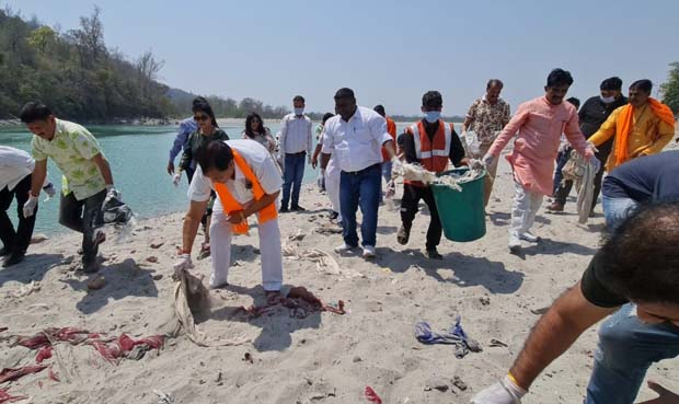 ऋषिकेश। भारतीय जनता पार्टी के 46वें वर्ष में प्रवेश पर कार्यकर्ताओं के साथ क्षेत्रीय विधायक प्रेमचंद अग्रवाल ने त्रिवेणीघाट पर श्रमदान किया।