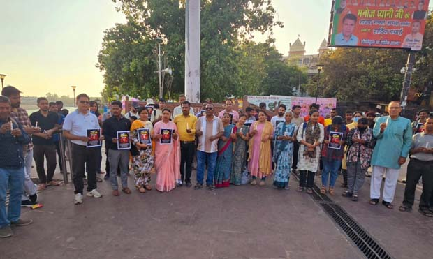 इस दौरान नगर निगम पार्षद माधवी गुप्ता, रीना शर्मा, अजय दास के नेतृत्व में दर्जनों लोग त्रिवेणीघाट स्थित गांधी स्तंभ पर जुटे। उन्होंने कैंडल जलाकर पहलगाम जम्मू-कश्मीर के बैसरन घाटी में हुए आतंकी हमले में 26 पर्यटकों पर हुए आतंकी हमले का विरोध किया।