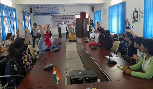Narendranagar News : नरेन्द्रनगर। राजकीय महविद्यालय में कैरियर काउंसलिंग एवं कौशल विकास सेल और एनएसएस की ओर से आयोजित कार्यशाला में आयुर्वेद विभाग के नोडल अधिकारी डॉ. आनंद कुमार श्रीवास्तव ने कहा कि योग मुद्राओं, श्वास और ध्यान को एकीकृत कर शरीर और मन की कंडीशनिग करता है।