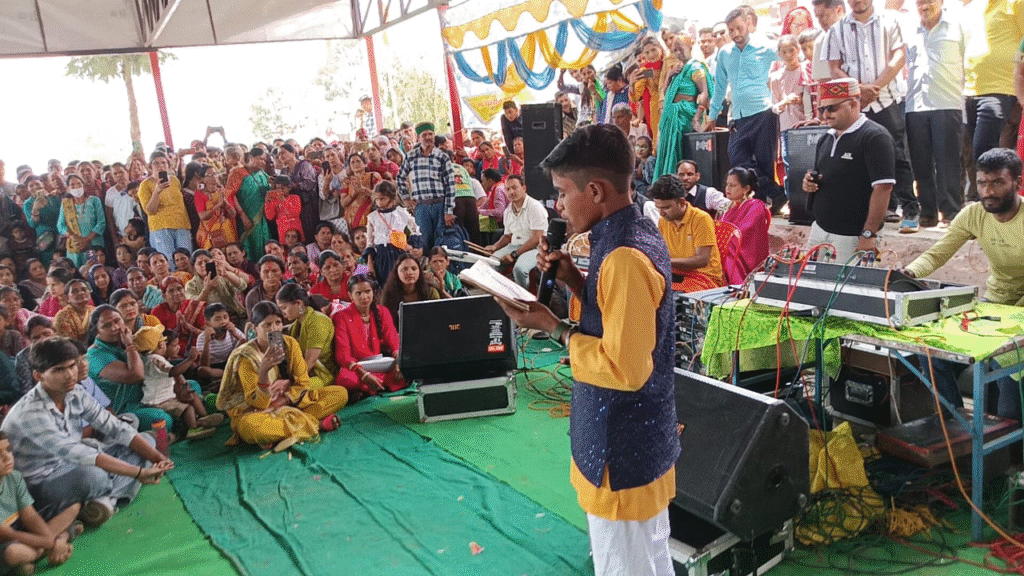 शनिवार को मुंडनेश्वर मंदिर में आयोजित खैरालिंग कौथिग मेले विगत वर्ष की भांति मंदिर समिति ने भजन सांध्य प्रस्तुति का आयोजन किया जिसमें इस बार स्थानीय उभरते हुए चर्चित युवा कलाकारों को अवसर दिया जिन्होंने की एक से एक सुन्दर सुंदर भजनों की प्रस्तुतियां देकर मेले में आए श्रद्धालुओं को थिरकने पर मजबूर कर दिया यह तक जो जहां खड़ा था वहीं पर ग्रुप में झुंड के झुंड थिरकते नजर आए यहां तक की समिति को व्यवस्था बनाने में भारी मकसद करनी पड़ी।