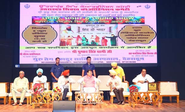 देहरादून। मुख्यमंत्री पुष्कर सिंह धामी ने गुरु तेग बहादुर के 350वें बलिदान वर्ष को समर्पित नाटक ‘हिन्द दी चादर’ के मंचन कार्यक्रम में प्रतिभाग किया। नाटक का मंचन उत्तराखंड सिक्ख कोऑर्डिनेशन कमेटी और श्री गुरु तेग बहादुर चैरिटेबल चिकित्सालय की ओर से किया गया।
