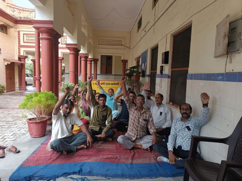 चतुर्थ श्रेणी कर्मचारी संघ चिकित्सा स्वास्थ्य सेवाएं उपशाखा गुरुकुल के पूर्व घोषित आंदोलन आठवें दिन समस्त कर्मचारियों ने वेतन के स्थाई समाधान हेतु तीन घंटे का कार्यबहिष्कार तथा परिसर /चिकित्सालय में नारेबाजी कर विरोध प्रदर्शन कर रोष व्यक्त किया