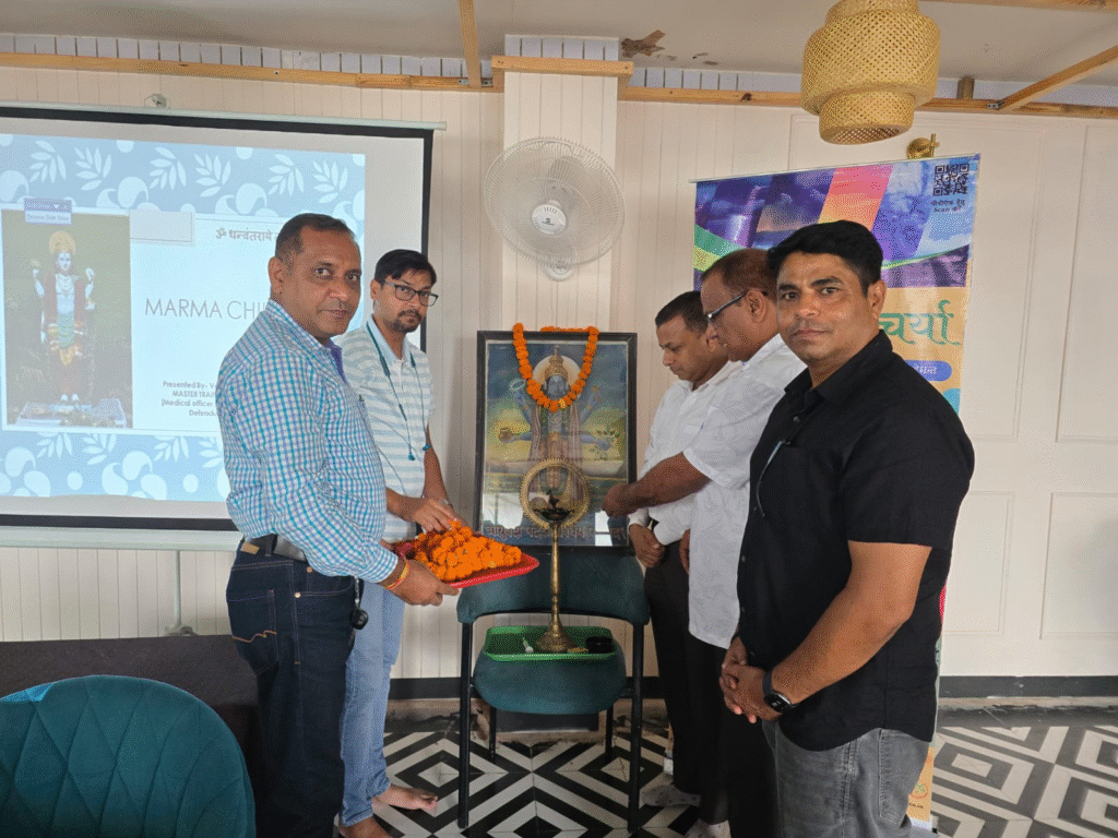 गौरतलब है कि डॉ. पंकज बच्चस वर्तमान में राजभवन उत्तराखंड में मर्म चिकित्सा विशेषज्ञ के रूप में कार्यरत हैं और उनके द्वारा ही इस विशेष कार्यशाला में प्रतिभागी पंचकर्म तकनीशियनों को मर्म चिकित्सा का सैद्धांतिक एवं प्रयोगात्मक प्रशिक्षण प्रदान किया गया। उन्होंने पीपीटी प्रजेंटेशन के माध्यम से मर्म चिकित्सा के ऐतिहासिक एवं वैज्ञानिक पक्ष को सरल शैली में प्रस्तुत किया। प्रशिक्षण में मर्म बिंदुओं की पहचान, उन्हें उत्प्रेरित करने की तकनीक, तथा विभिन्न व्याधियों में उनके चिकित्सीय लाभों की गहराई से जानकारी दी गई। कार्यशाला में नंदलाल, कोमल देवी, रामकुमार, वर्षा चौहान एवं राज किशोर जैसे पंचकर्म सहायकों को सटीक तकनीकी ज्ञान के साथ मर्म चिकित्सा का प्रशिक्षण प्रदान किया गया, जिससे भविष्य में वे अपने-अपने चिकित्सा केंद्रों में इस विशिष्ट पद्धति को लागू कर सकेंगे।