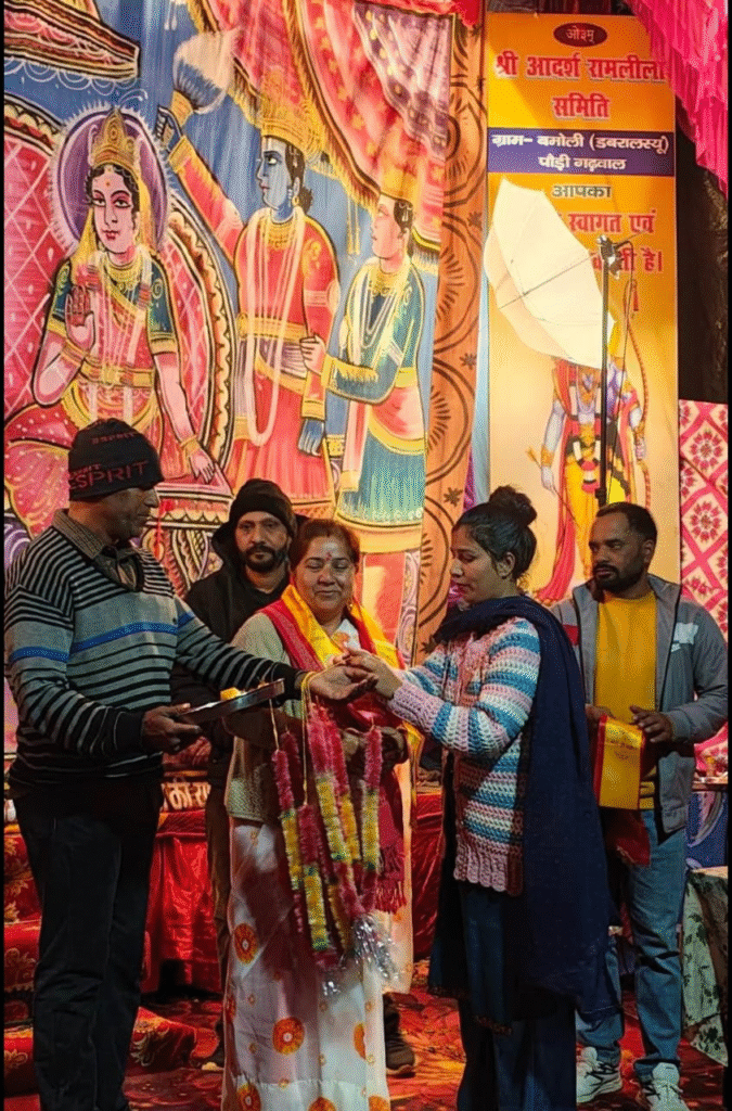 द्वारीखाल विकासखंड के ग्राम बमोली में श्री आदर्श रामलीला समिति द्वारा आयोजित रामलीला के आठवें दिन “रावण-अंगद संवाद” का अद्भुत मंचन किया गया। कार्यक्रम में मुख्य अतिथि के रूप में अर्जुन सिंह नेगी (जिला पंचायत सदस्य), श्रीमती मीरा रतूड़ी (पूर्व प्रदेश मंत्री, भाजपा), श्रीमती यशोदा देवी (कनिष्ठ प्रमुख) एवं रवींद्र सिंह रावत (पूर्व ब्लॉक प्रमुख) के साथ कई अन्य जनप्रतिनिधि उपस्थित रहे।