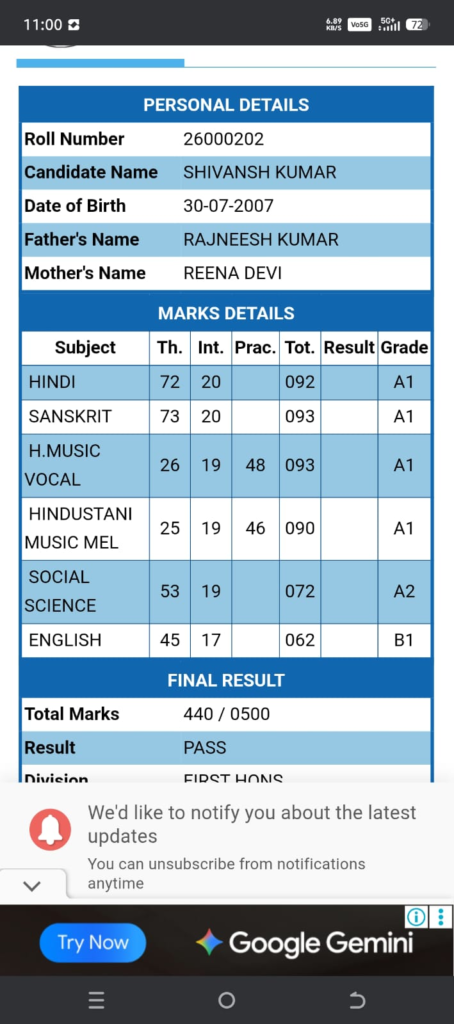स्वामी अजरानंद हाईस्कूल, भूपतवाला के छात्र शिवांश ने कुल 500 में से 440 अंक प्राप्त कर प्रथम श्रेणी में उत्तीर्णता हासिल की। उनके परिणाम में हिंदी, संस्कृत तथा संगीत जैसे विषयों में उत्कृष्ट प्रदर्शन विशेष रूप से उल्लेखनीय रहा, जहाँ उन्होंने ए-वन ग्रेड प्राप्त कर अपनी प्रतिभा का सशक्त प्रमाण प्रस्तुत किया।